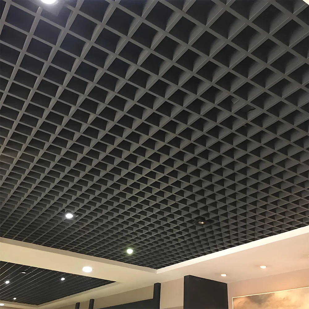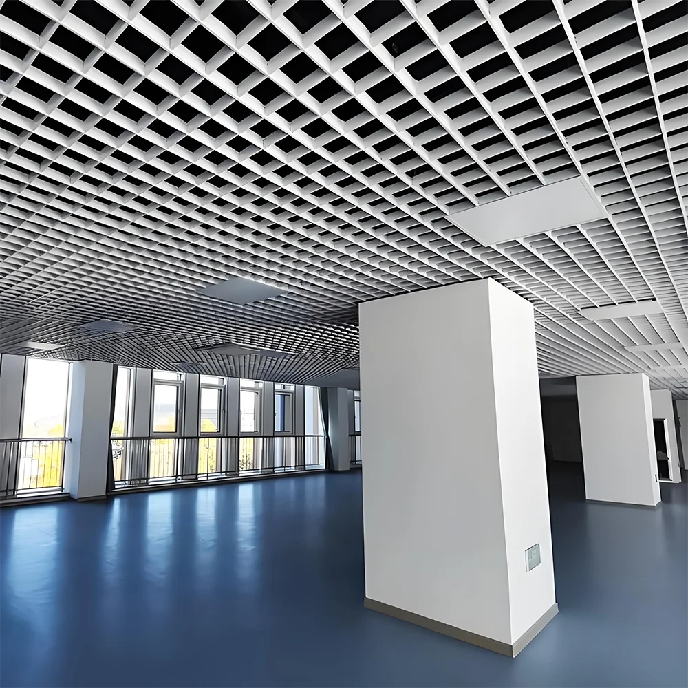 Die speziell für Supermärkte und Einkaufszentren entwickelte Aluminium-Offengitterdecke verfügt über ein metallenes hängendes Gitterdesign. Die offene Struktur trägt nicht nur zur Beleuchtung und Belüftung des Raumes bei, sondern versteckt auch effektiv die Leitungen an der Decke. Da hochwertiges Aluminium seine Feuerfestigkeit, Feuchtigkeitsbeständigkeit und Langlebigkeit gewährleistet, erfordert sie eine schnelle und einfache modulare Installation.