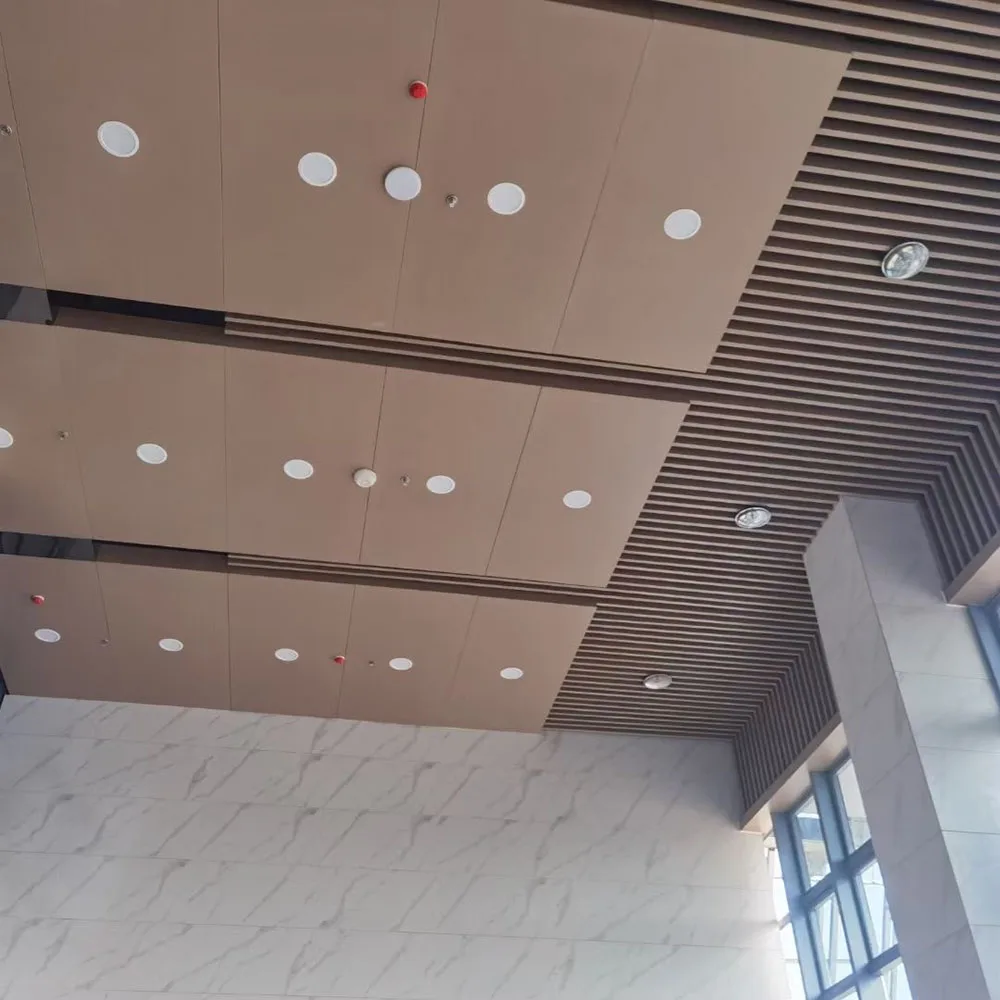 Metalen plafonds omvatten hangende aluminium plafondtegels en aluminium beplatingswandpaneelplafonds, allemaal vervaardigd uit hoogwaardige metalen materialen, wat zowel duurzaamheid als esthetische aantrekkelijkheid biedt. De aluminiumstructuur is licht, stabiel, gemakkelijk te installeren, effectief vuurbestendig en vochtbestendig, en gemakkelijk te reinigen en onderhouden. Het wordt breed toegepast in commerciële, residentiële en andere ruimten. Het kan niet alleen de stijl van de ruimte verbeteren, maar ook de akoestische en visuele effecten optimaliseren.
